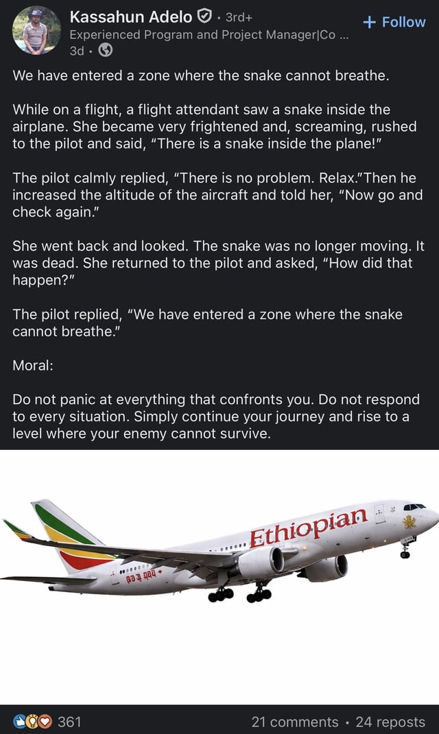 When the snakes on your plane can’t breathe